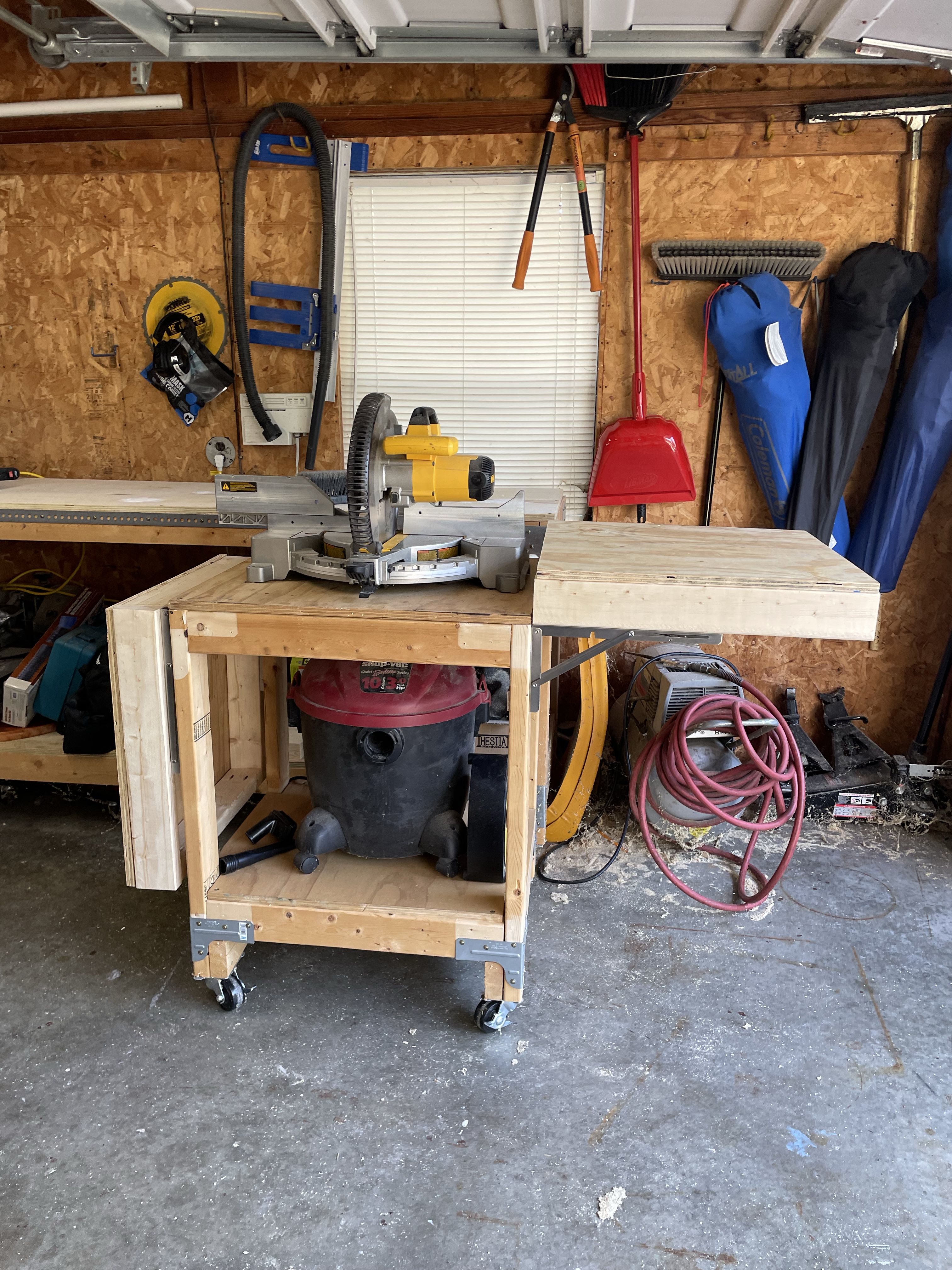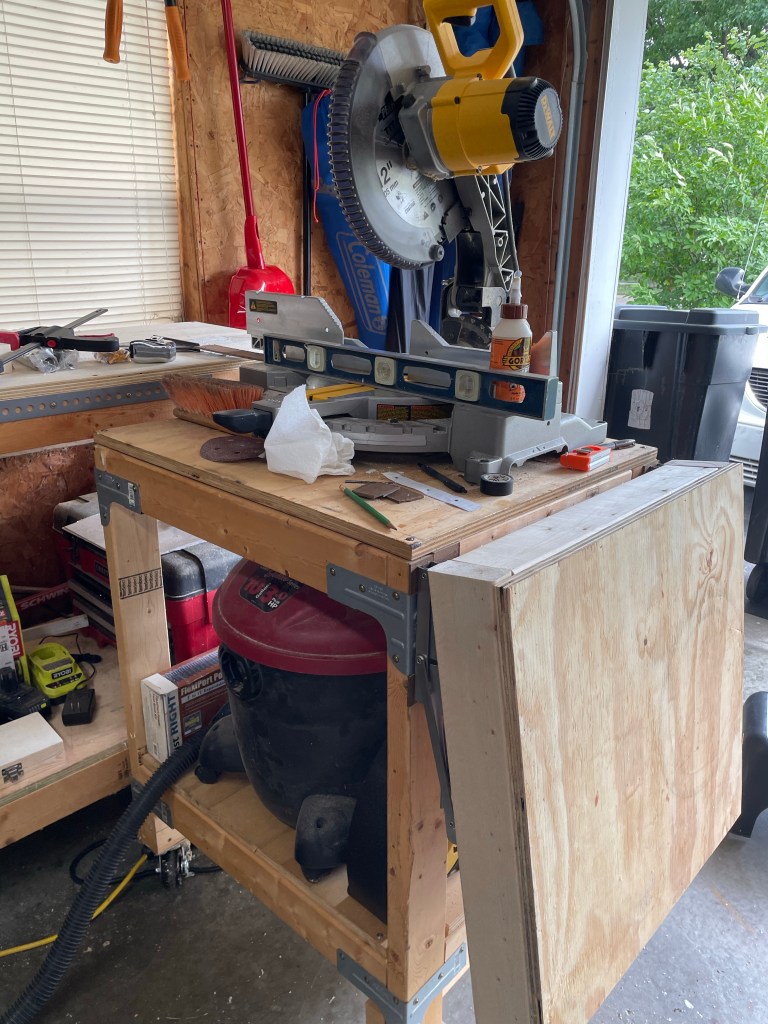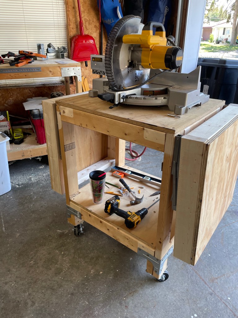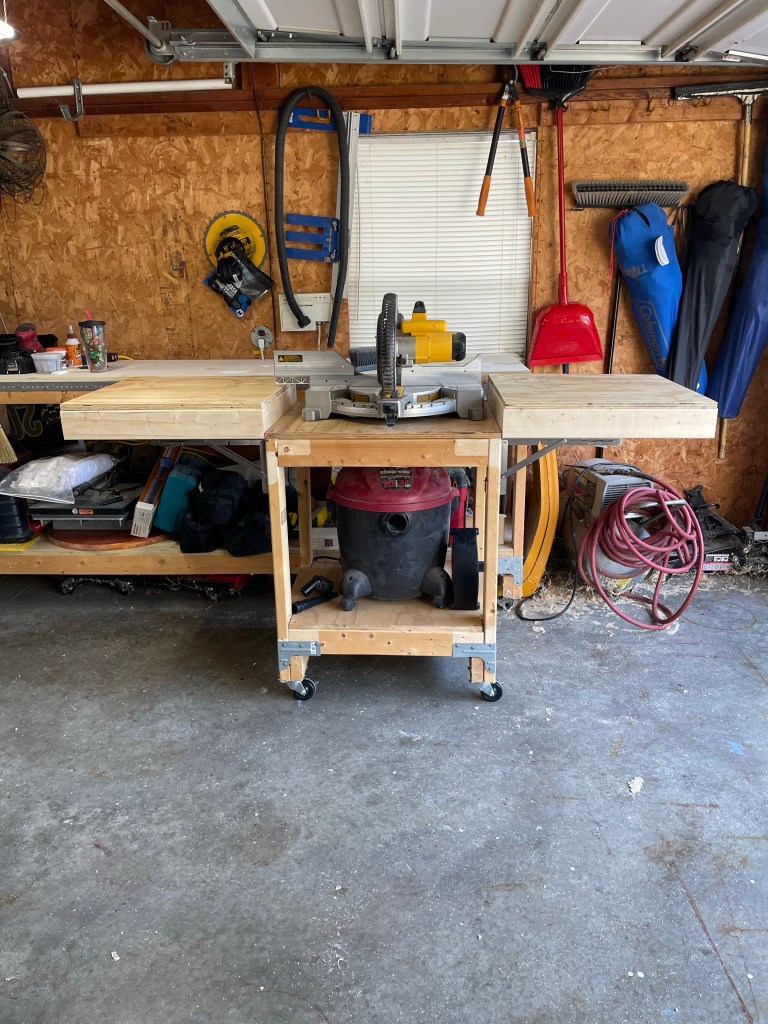 Who hasn’t seen the multitude of diyers adding these collapsible sides to their miter stands? Honestly when working most of the time by yourself in a small area you have to maximize your space and safety so this really is a perfect idea. So, I added some to the table I made years ago to match my work bench and I am in love.