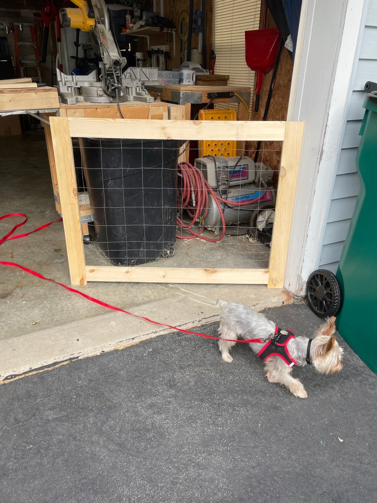 I added the lattice with staples using my hand held stapler and that made for a really secure attachment. I don’t want the dogs to be able to open it in any way.