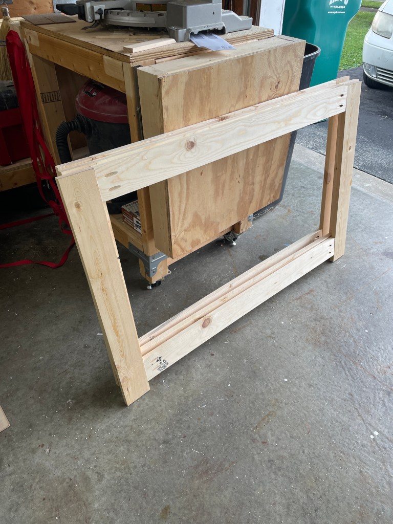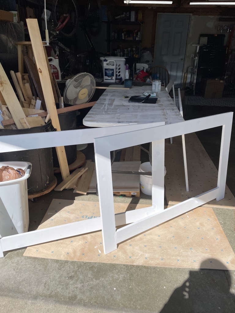 After I got all four of the frames built I gave them two coats of exterior white paint. This won’t be in the elements since it will be at the edge of my garage and folded up when not in use but I definitely wanted an exterior paint on them.