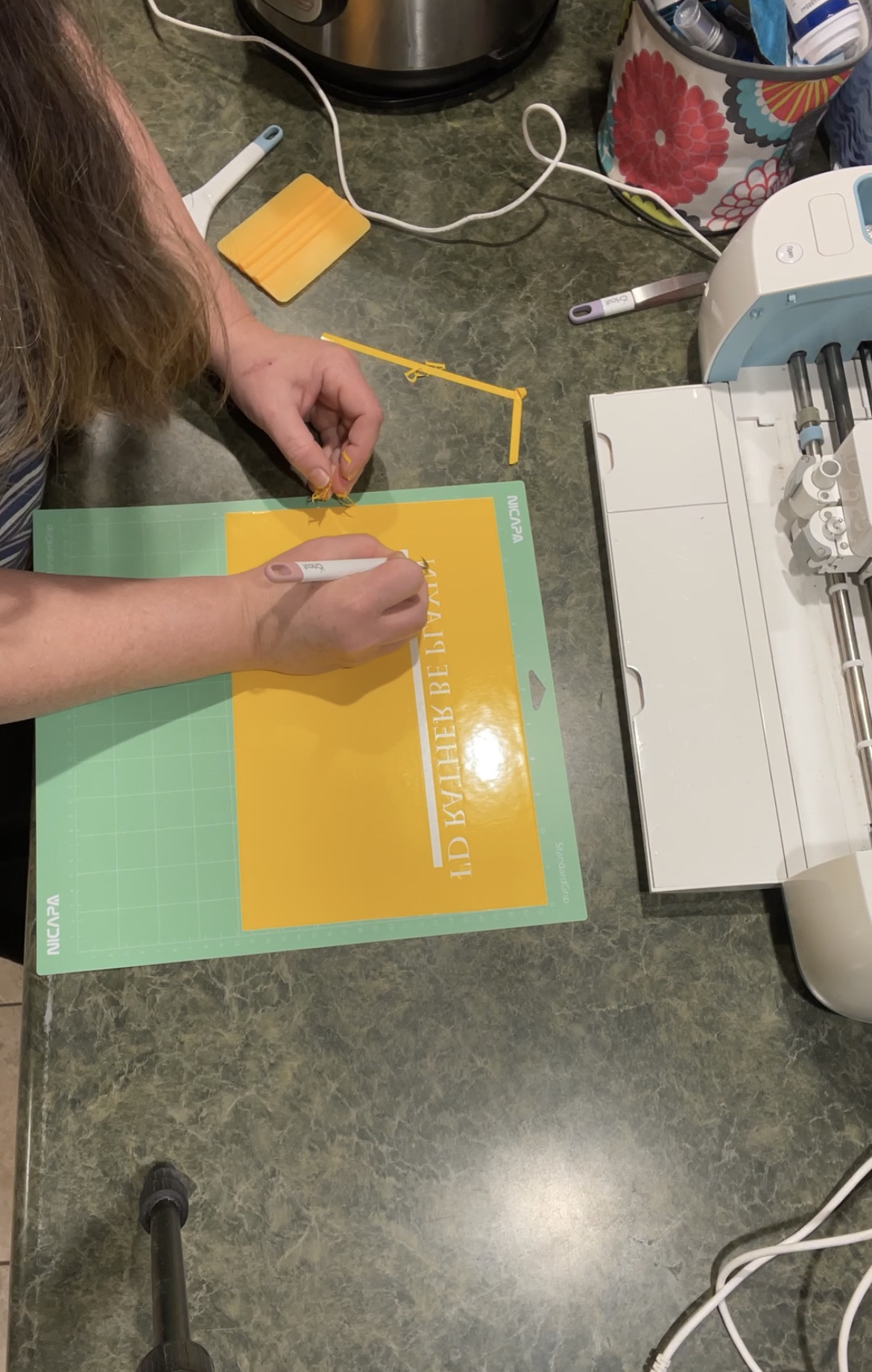 Next is cutting it out, MAKE SURE YOU HAVE ANY DESIGN WITH WORDING SET TO MIRROR IMAGE, and then we can weed the design and get it ready for the screen. I used 651 vinyl but you can use htv if you need a permanent screen for making lots of the same design.