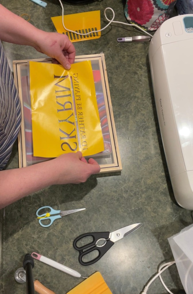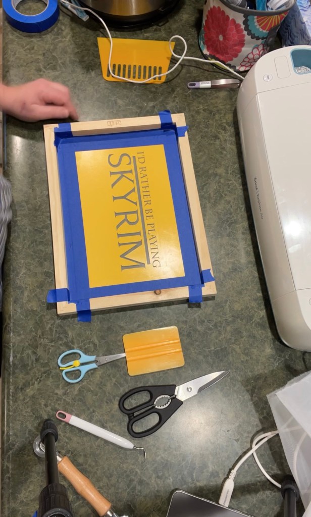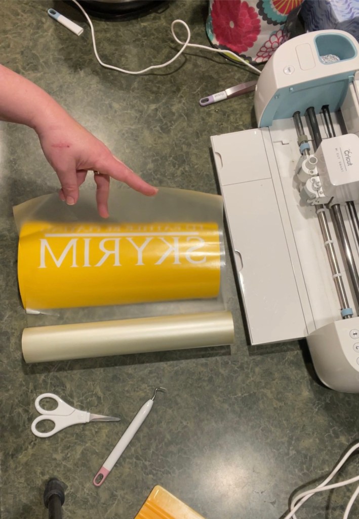 I used light pressure to apply my transfer paper. You don’t need to brandish it to much or anything. You just need the transfer tape to stick to this long enough to transfer it to the screen.