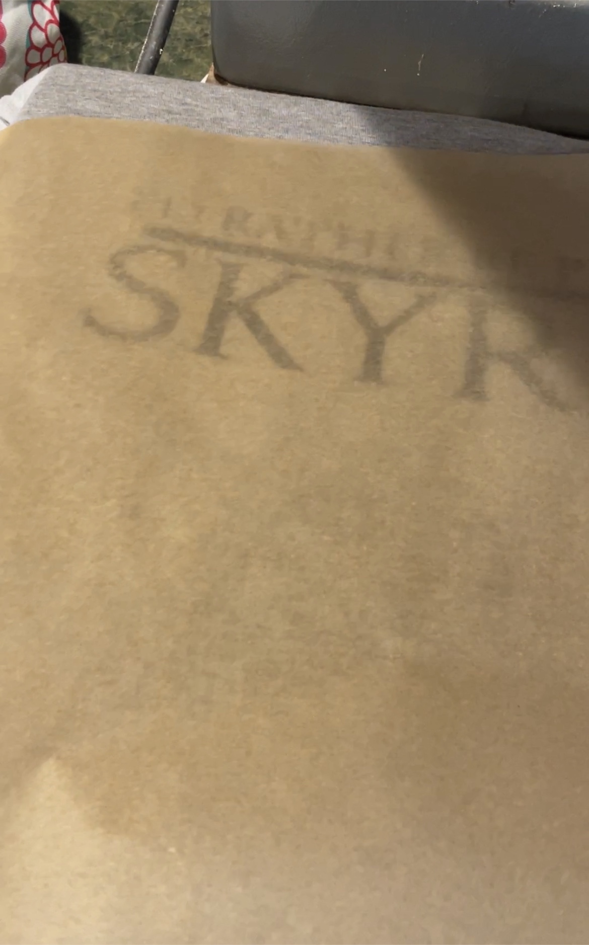 Now its time to set it with heat. You can use an iron on the hottest setting or a heat press at 320*f for 40 seconds. Make sure to cover the image with parchment paper or with a teflon sheet.